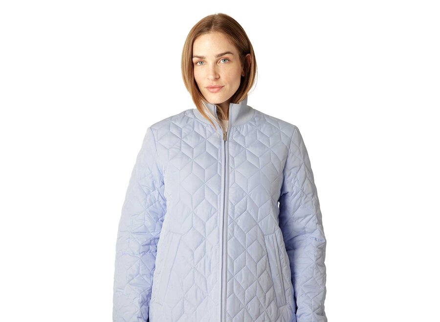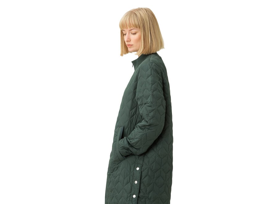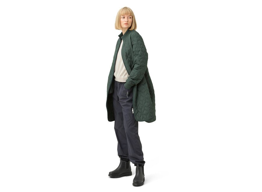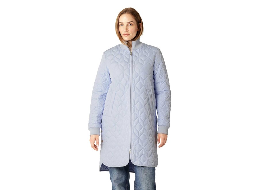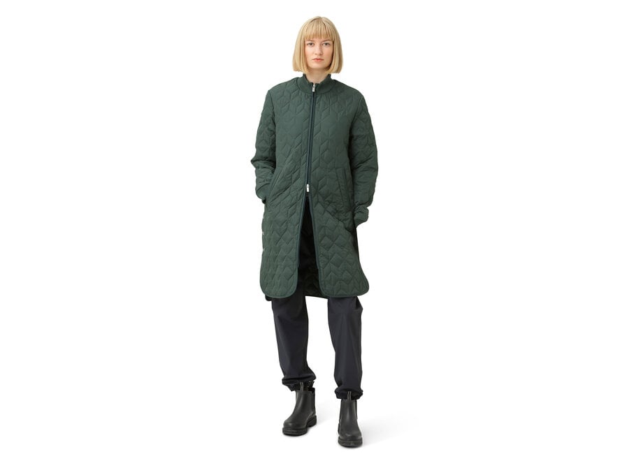 Our feminine and functional Ilse Jacobsen ART06 Long Quilt Coat is flattering and comfortable with a slight A-line silhouette. Made from a breathable soft shell material, this mid length style features a detachable hood, functional front pockets, short slits at side seams, button closure at arm wrist, Ilse Jacobsen Hornbæk reflective logo on left sleeve and YKK AquaGuard zipper at front and on the pockets. This functional material resists water pressure up to 5000 mm and has an added Ecorepel water and dirt repellent coating to ensure a long life. All seams are taped.