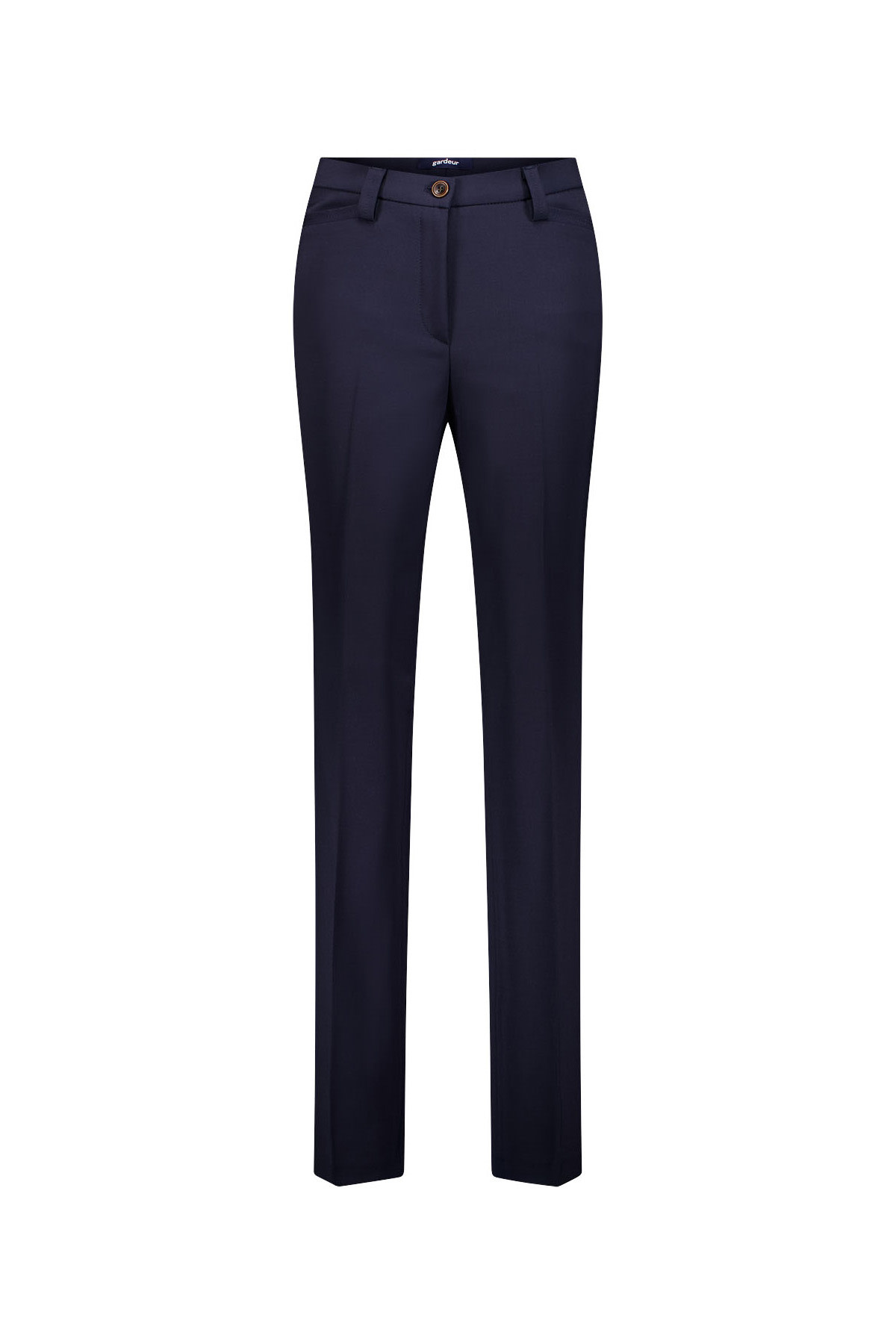 The KAYLA in Special Fit features a unique silhouette that combines a regular rise with a slim fit in the thighs. The straight legs create an elegant shape, while the slanted welt pockets add a stylish touch. Made from high-quality wool gabardine, it is durable, wrinkle-resistant, and ideal for year-round wear.