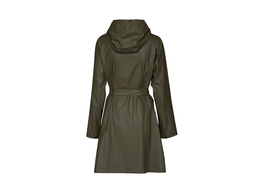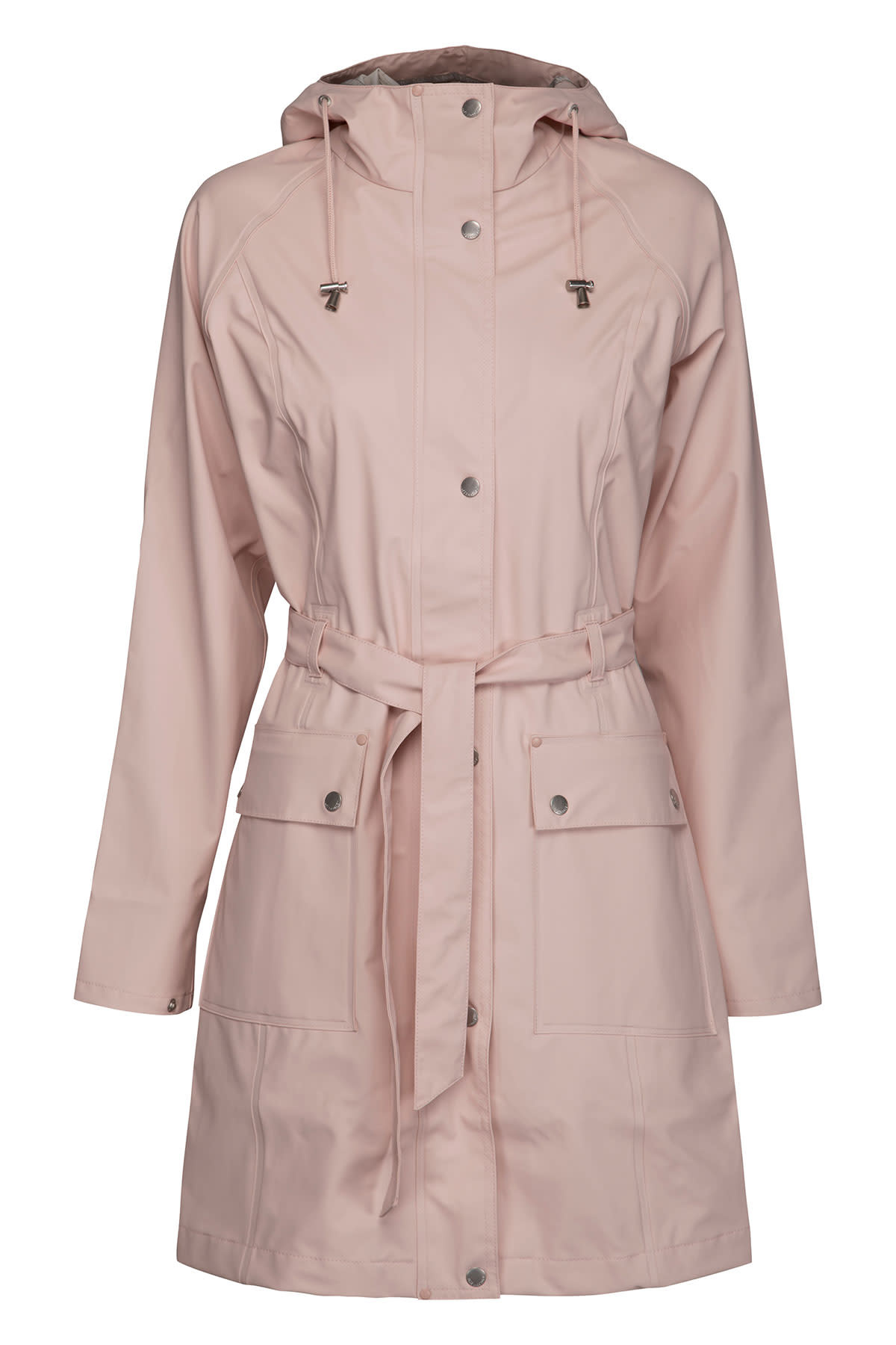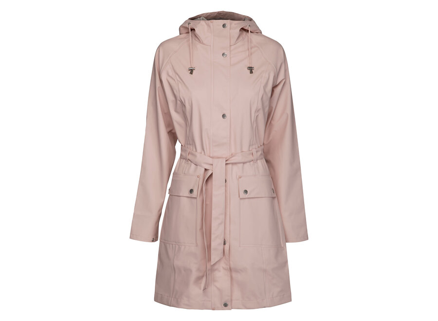 Our RAIN70 is an Ilse Jacobsen classic style, a light and feminine trench-inspired raincoat with waist belt, patch pockets and length just above the knee. Featuring: functional hood with discreet embossed logo, patch pockets, snaps at the bottom of the sleeve for extra weather protection and a two-way zipper. Inside has a clean and delicate finish, with a matching logo ribbon binding on the seams. The fabrication is a quality waterproof rubberized PU with polyester jersey lining. All seams are double welded. This coat will keep you dry in style!