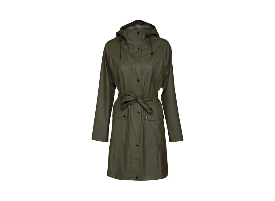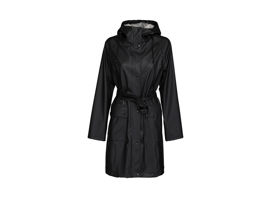 Our RAIN70 is an Ilse Jacobsen classic style, a light and feminine trench-inspired raincoat with waist belt, patch pockets and length just above the knee. Featuring: functional hood with discreet embossed logo, patch pockets, snaps at the bottom of the sleeve for extra weather protection and a two-way zipper. Inside has a clean and delicate finish, with a matching logo ribbon binding on the seams. The fabrication is a quality waterproof rubberized PU with polyester jersey lining. All seams are double welded. This coat will keep you dry in style!